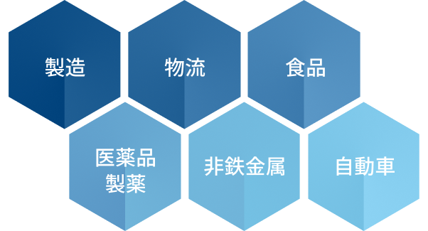 私たちは 製造、物流、食品、医薬品、製薬、非鉄金属、自動車 など多様な業務経験を持ち、業界特有の課題を理解した 支援を得意としています。